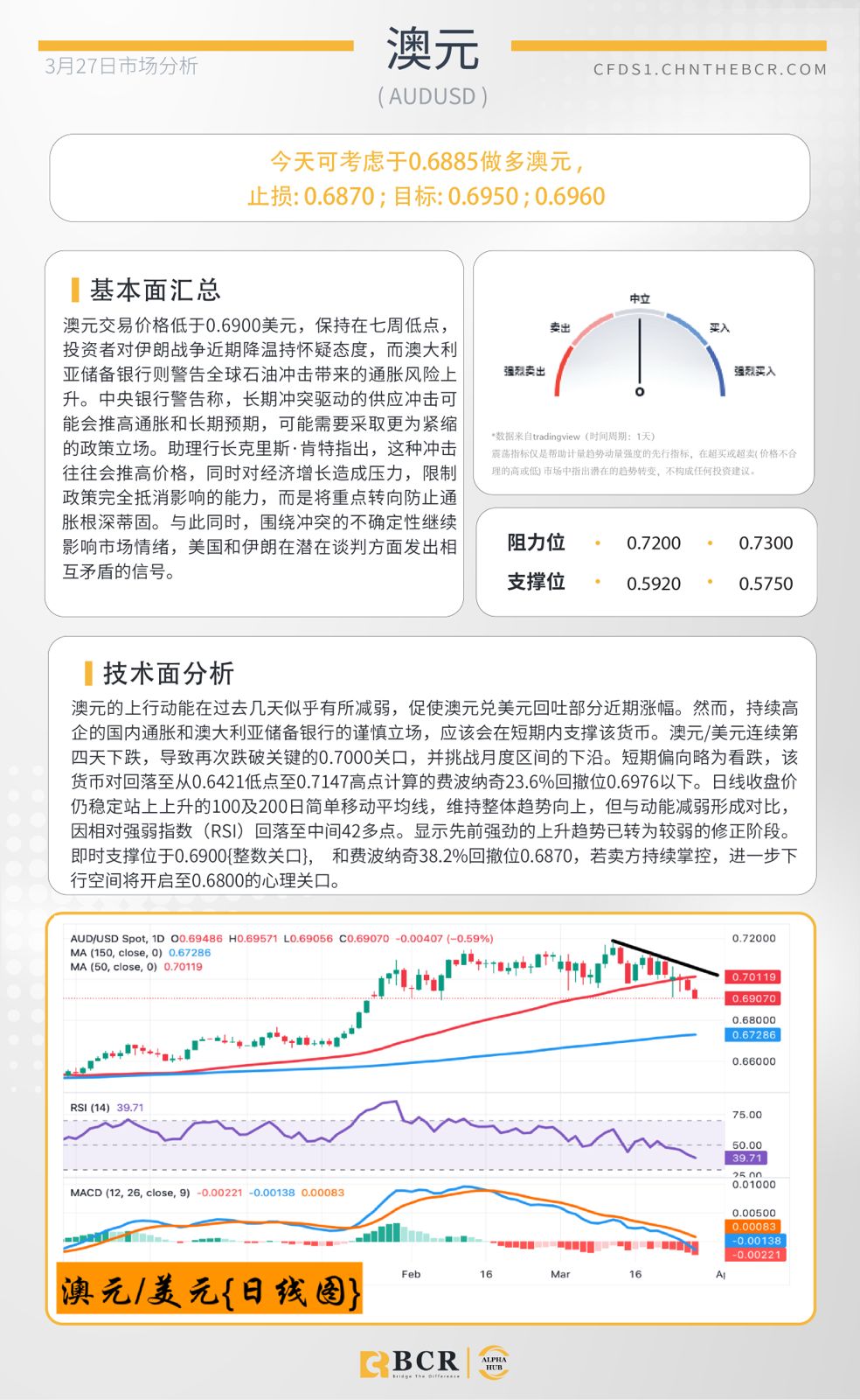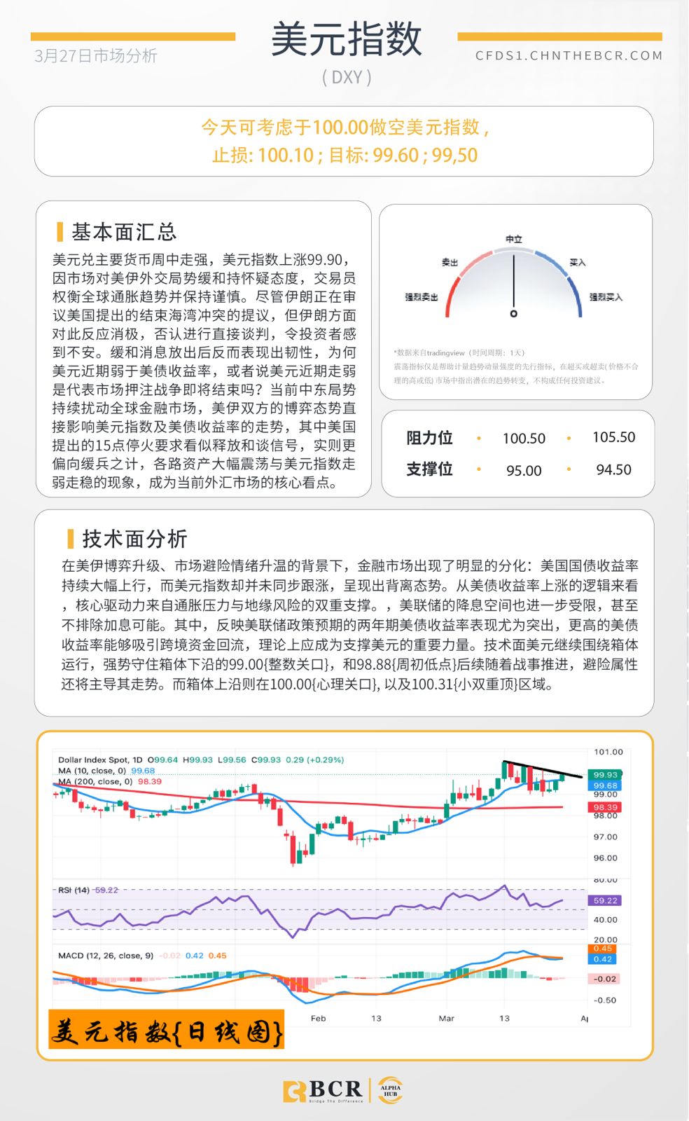 每日分析 2026年3月26日 | 伊朗局势持续紧张,美元坚挺;油价反弹;黄金承压;澳元/美元走弱